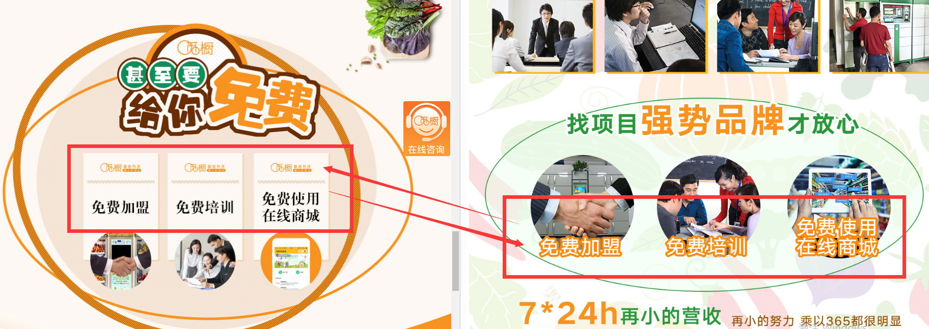 (左側為覓櫥優鮮共享果蔬店原創推廣圖;右側為某品牌盜版宣傳圖)
