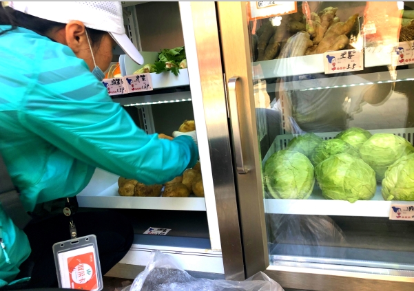 對于體積、重量較大的比如,西瓜、榴蓮等這類商品,共享果蔬將其陳列至最下方托盤,這樣不僅方便消費(fèi)者拿取,還利于工作人員上貨。