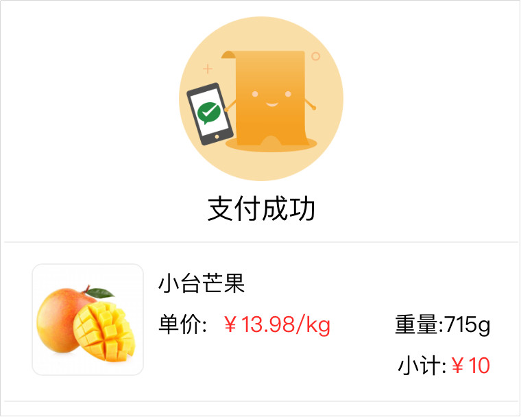 四:選購結束后,關門自動扣款,綁定儲值卡的手機將收到一條結算信息提醒,詳細列出購物清單:您買了什么菜,花了多少錢,卡里還有多少余額,一目了然。