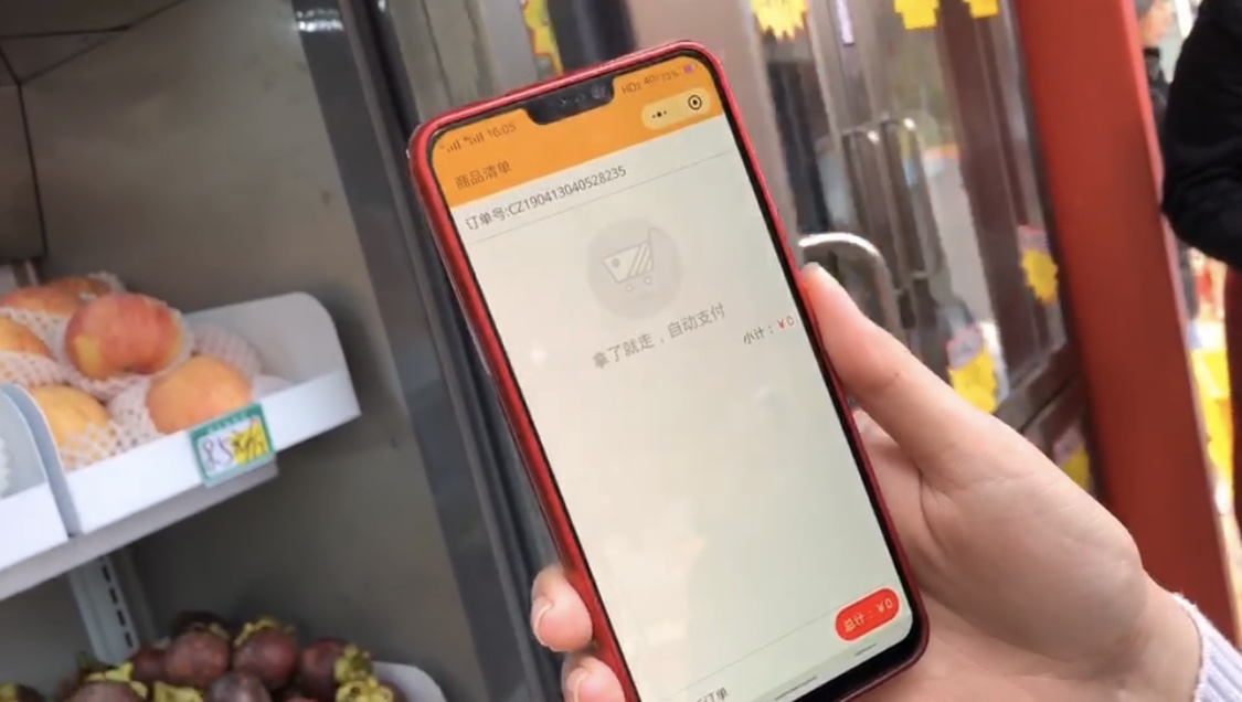 二:開門挑選果蔬,拿起商品,手機上都會同步顯示商品的名稱、價格、重量等信息;